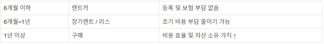 7. 체류 기간별 차량 소유 전략 (구매 vs 렌트/리스)