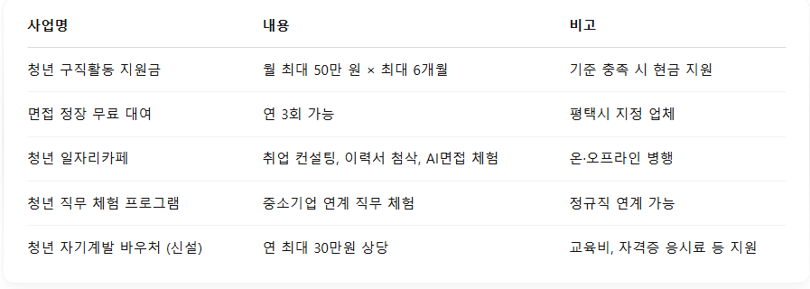 - 지원방식: 계좌입금 (활동계획서 및 구직활동 증빙 필수)
