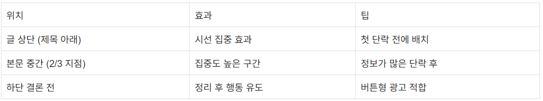 - 추천 위치: 제목 아래, 중간 본문 1곳, 결론 앞