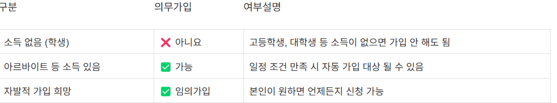 조건에 따라 자동가입 될 수 있으며 사업장이 국민연금에 가입된 상태라면 ‘직장가입자’로 등록되어 자동 공제될 수 있지만 단기 아르바이트나 일용직의 경우 국민연금 미적용 사업장도 많으므로, 급여 명세서에서 ‘연금 공제’ 여부를 꼭 확인해 보시기 바랍니다.