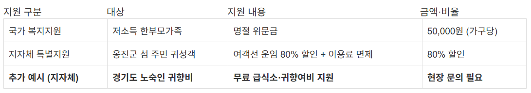 추석 귀향비 지원