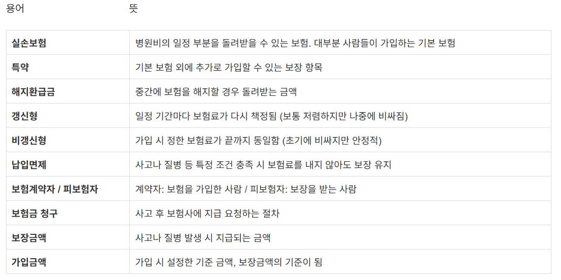 - ✅ 실손보험은 있는가? (가장 기본적인 보장)